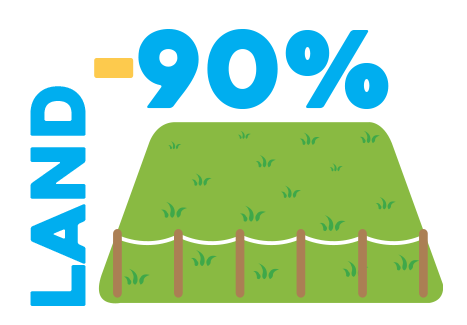While traditional farms require 2500 square meters to produce one ton, we use a mere 150 square meters – that's a 94% reduction. Choose sustainability and conserve the environment with us.